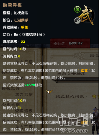 99武学“虬枝剑法”的架招,还不错吧和上面几个差不多,但是禁轻功稍微逊色了点,定身是最棒的。(招架调息时间太长了)