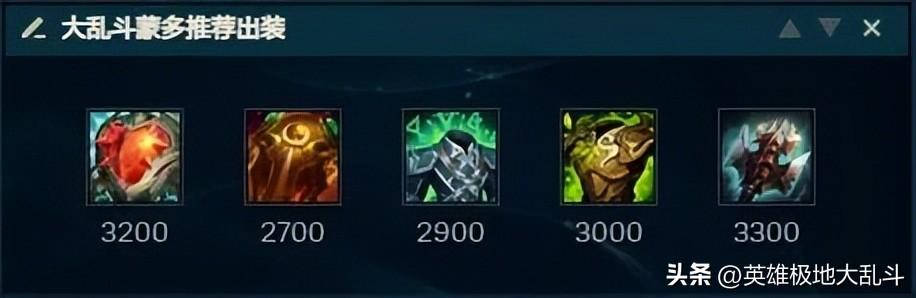 最后一件才考虑补巨九增加伤害。因为蒙多大乱斗有debuff,第二件出巨九太脆,血量虚高扛不住伤害。