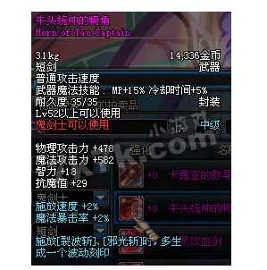 犄角短剑可以说是暗帝的远古遗愿武器,魔法技能:MP+15%