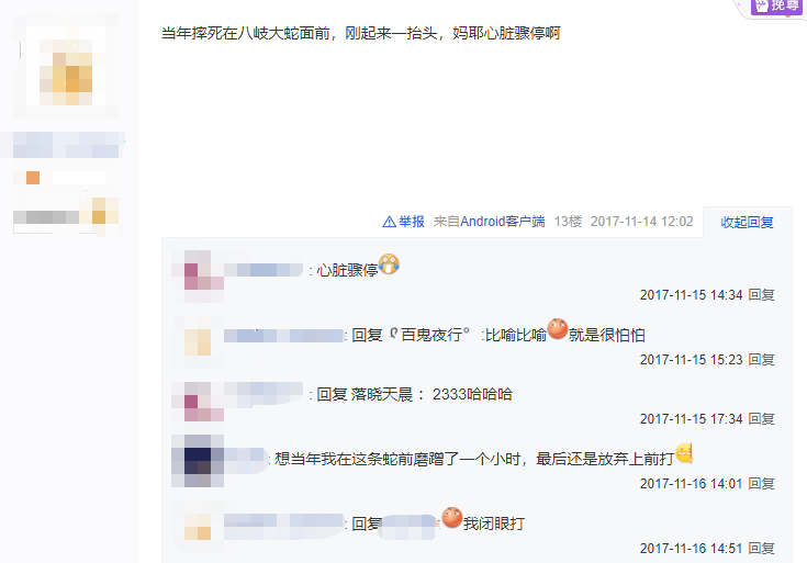 不少小白玩家都因为这条大蛇的突然出现而留下了心理阴影,在贴吧哭诉自己被吓坏的糟糕经历。