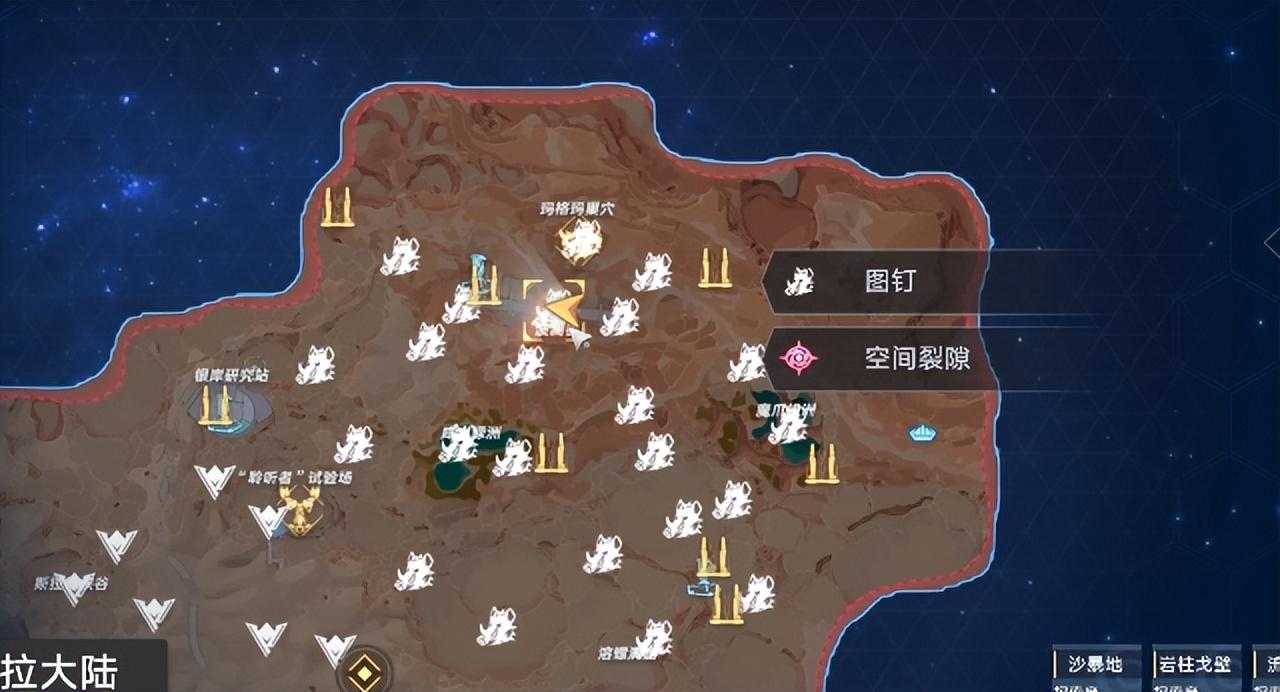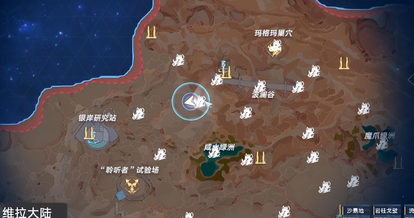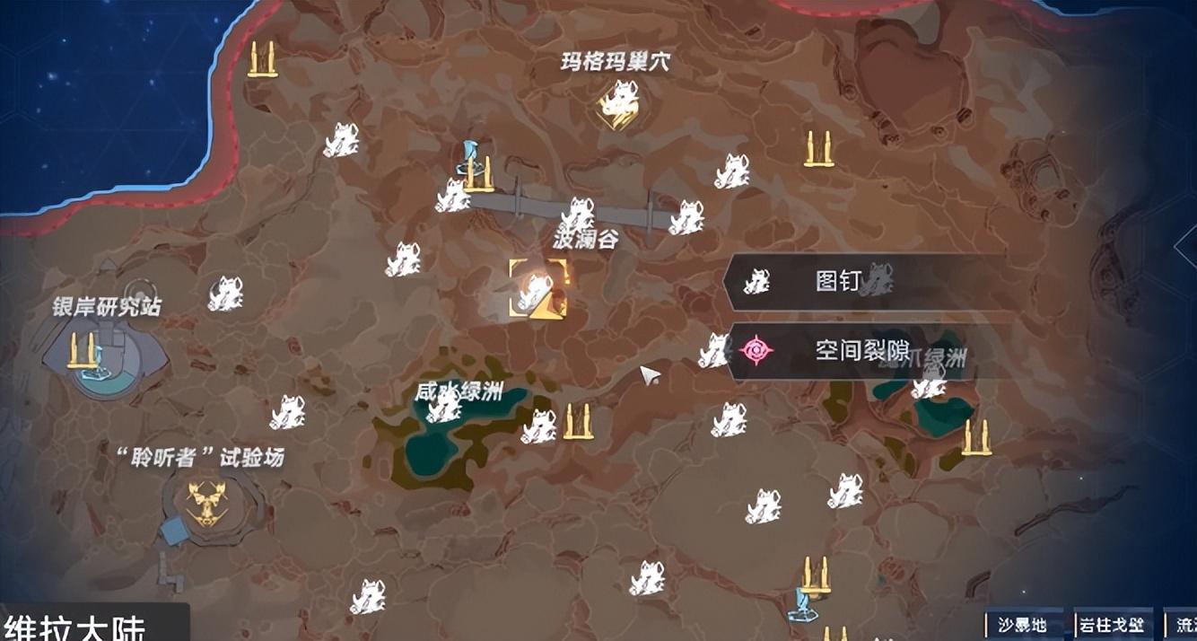 幻塔灰域的空间裂隙的探索目前就剩岩柱戈壁这一块地图了,以下是甜菜妹给大家带来的幻塔维拉大陆岩柱戈壁空间裂隙点位具体解析。大家可以根据点位标注下,等角色战力较高后再去清怪关裂隙,记得关闭空间裂隙后才有奖励。