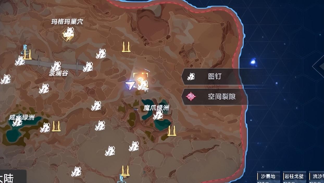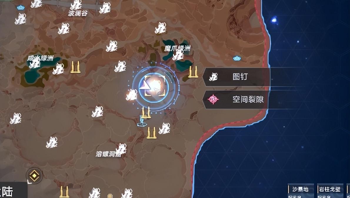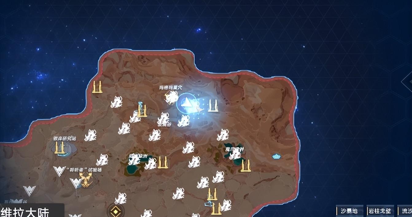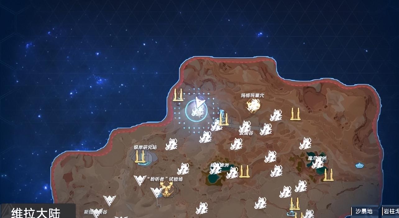 幻塔灰域的空间裂隙的探索目前就剩岩柱戈壁这一块地图了,以下是甜菜妹给大家带来的幻塔维拉大陆岩柱戈壁空间裂隙点位具体解析。大家可以根据点位标注下,等角色战力较高后再去清怪关裂隙,记得关闭空间裂隙后才有奖励。