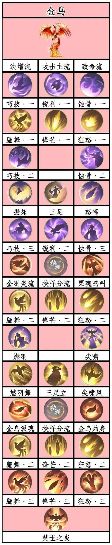 1️⃣ 金乌天赋 – 爆发与攻击的绝佳选择金乌天赋注重攻击力和爆发力,适合那些追求高伤害的仙友们。我们为你详细列出了金乌法增流和金乌致命流两个加点流派的顺序和技能特点。不要错过绝技《金羽炎流》和《栗魂鸣叫》等让你在战斗中如虎添翼的技能!