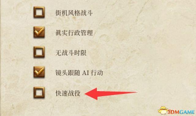 点击快速战役的复选框,就会将战役的重心放在摧毁其他派系或比其他派系存活更久上,而非征服整个地图。