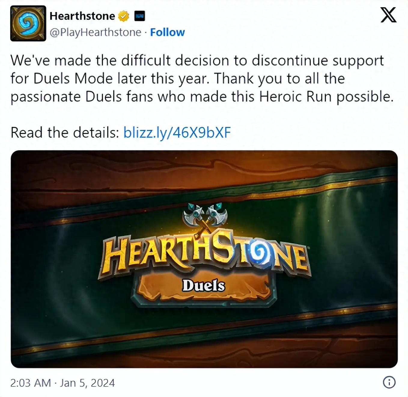 暴雪官方现已宣布:即将停止支持决斗模式,而此模式预计会在 2024 年 4 月从《炉石传说》客户端中移除。