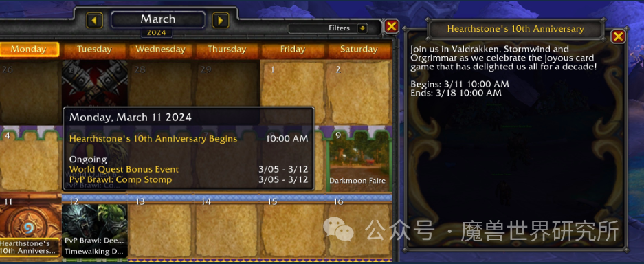 《魔兽世界》将从 3 月 11 日开始庆祝《炉石传说》十周年纪念活动,为期一周。