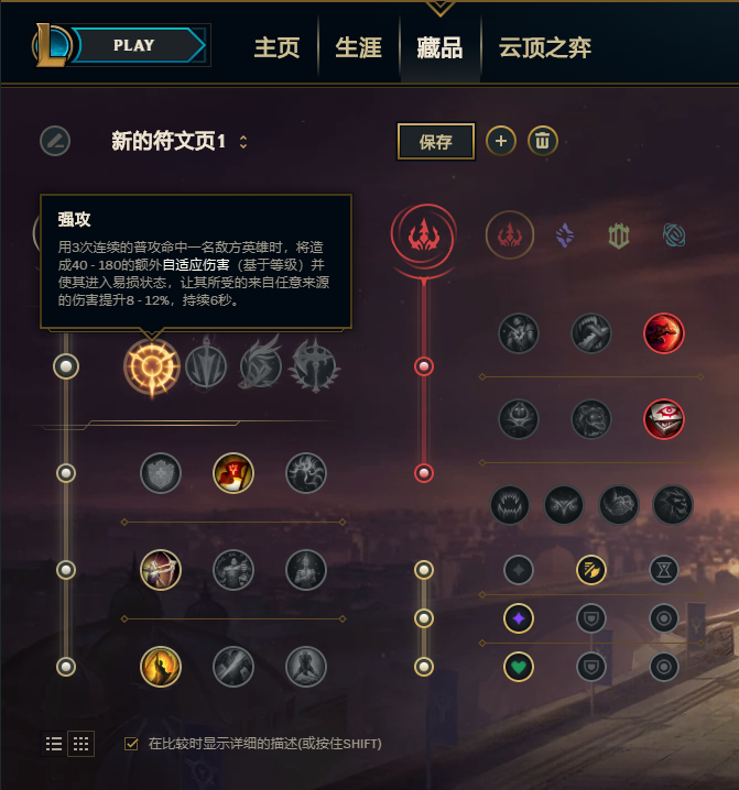 1、强攻:纯粹的攻击型符文,对依赖普攻打伤害的英雄有着不俗的伤害提升,用来打脆皮英雄有奇效,对拼打出强攻被动后配合三相被动一下强化Q直接打掉ADC半管血也是正常的情况。在面对脆皮英雄时,自己的伤害越高,给对面的威慑力就越大,能达到一种以攻为守的效果