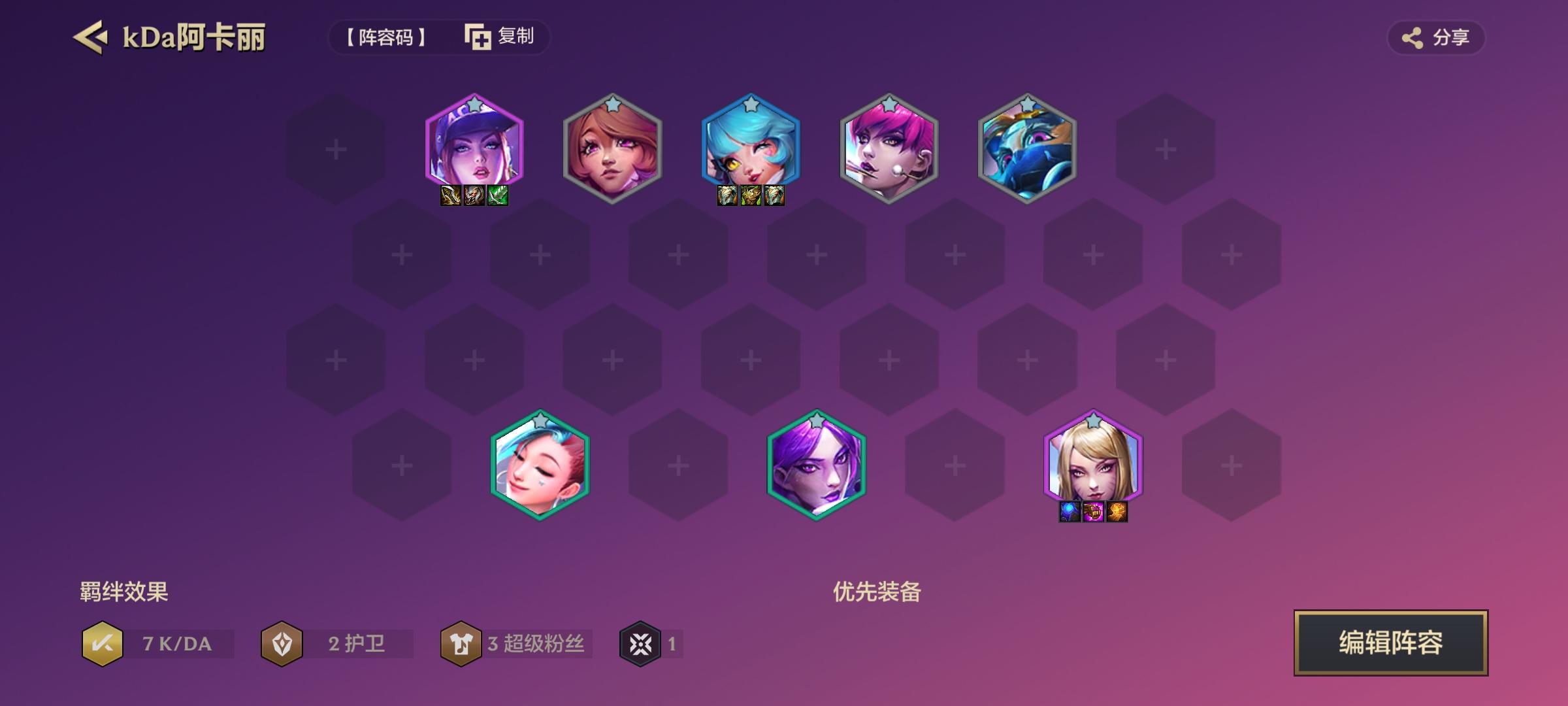 除此之外,还有一个搭配,那就是阿狸。阿狸本身是KDA中的英雄,加上阿卡丽的话,就能组成7KDA。具体所需英雄如下: