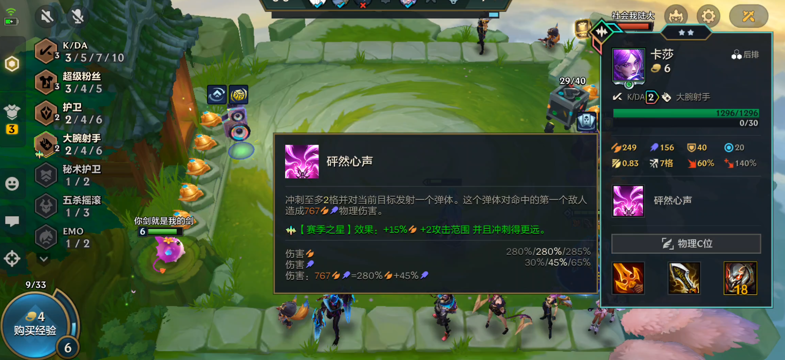 对于四费卡主C的阵容来说,运营是比较关键的,因为刷四费的赛季之星起码得上八人口。前期如果锁血顺利,八人口还可以慢D,要是七人口就没血了,那就只能梭哈了。这种情况下,也就不用想四费的赛季之星了,有三费妮蔻的就不错了。