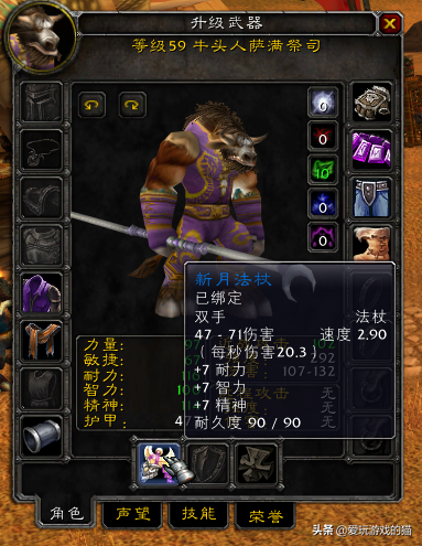 哀嚎洞穴“尖牙德鲁伊”任务:魔兽世界怀旧备战:哀嚎洞穴任务接取详细回顾获取方式非常简单,基本每个萨满都会选择法杖。作为萨满的第一把蓝色武器,新月法杖不但提供了可观的DPS,而且提供了大量的基础属性,非常适合练级。