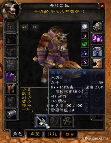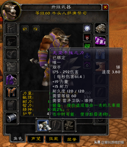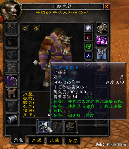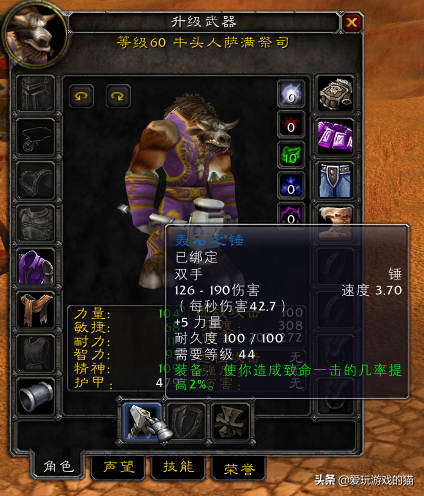 武器战,惩戒骑,增强萨在60年代的毕业武器,无与伦比的DPS。获取它需要你有一个稳定的NAXX团队,从开荒到FARM的肝,以及在团队中有很好的人品。
