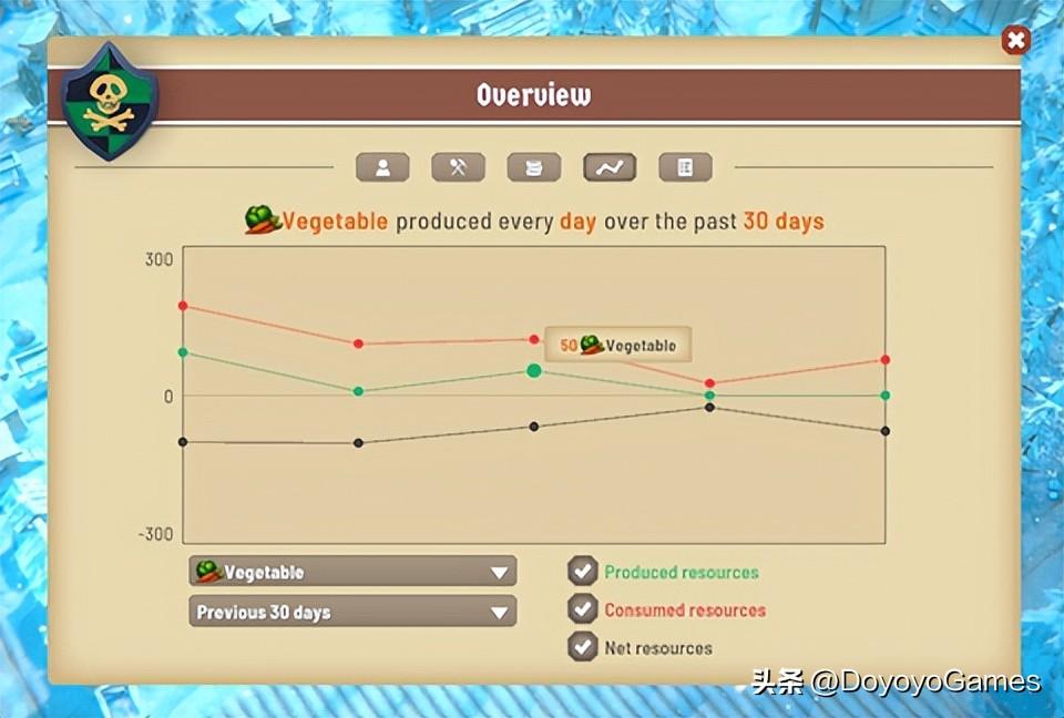 全新的资源生成图表帮助您可以更方便地查看和跟踪资源生产和消耗的状况。