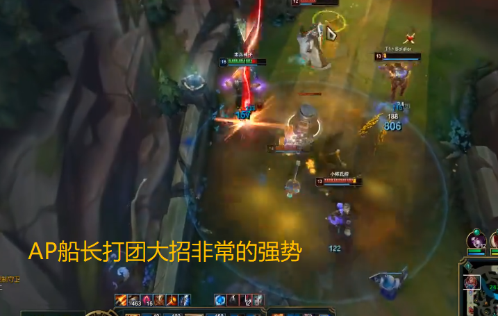 在团战中AP船长就有大作用了,在敌人没有什么魔抗装的情况下,一个AP装备正常的船长的大招只要大到敌人的C位,基本上都是能直接大残的,当时装备发育不正常的话就不要尝试打团了,还是得好好去发育。反正基本上就是AP船长一个大招,尽量大到可能多的人,然后剩下的就交给队友去收割了,或者自己团队里有团控的话,自己的大招也可以用来后手打收割,效果也是非常不错,船长的大招本来也就是一个多功能性的大招,根据不同的情况来使用。