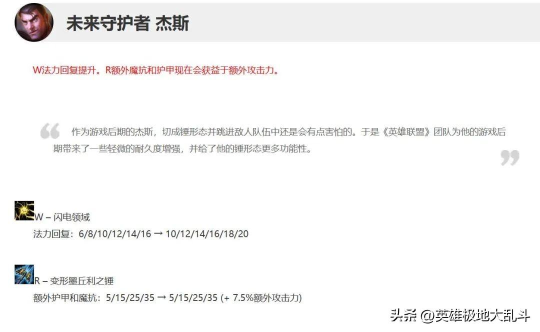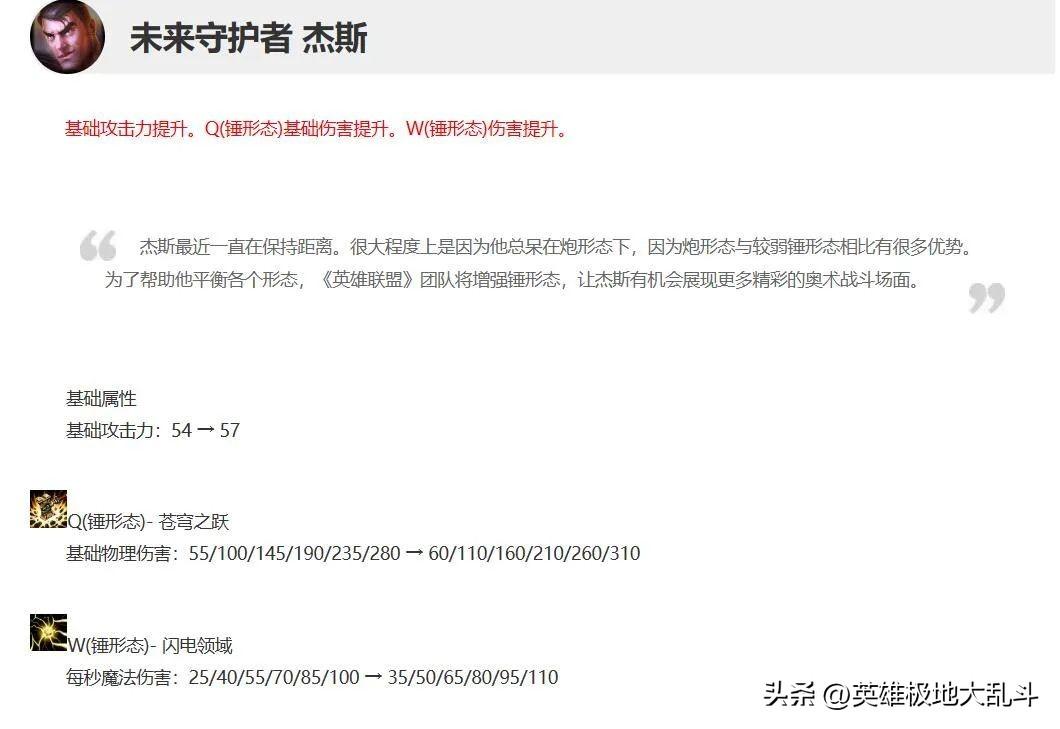 13.1版本加强了杰斯锤形态的伤害。