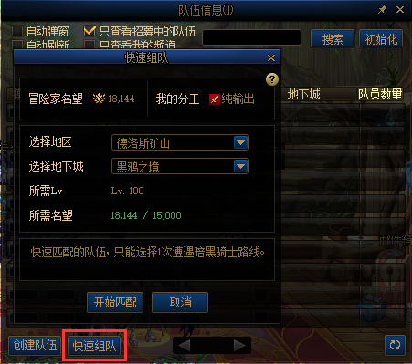 快速匹配的队伍仅能选择遭遇1次暗黑骑士(即奖励上限为2阶)