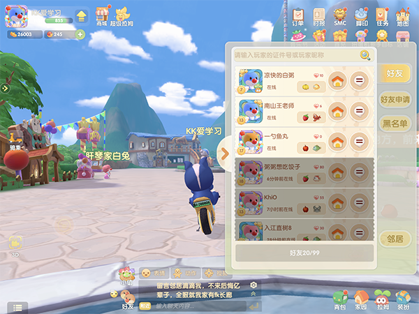 好友图标就在界面下方的对话框旁边,点击可以查看好友列表,浏览好友的特产和拜访好友家园。