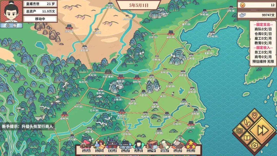 尽管是一款模拟经营PC游戏,但《中华一商》却有着一套简单易懂的游戏框架,甚至从某种角度而言,其简洁程度近乎于手游——作为一名志在富甲一方、扬名立万的商人,玩家将选择一座城市作为商贸根据地,通过倒卖商品起家,一点点建立横跨中国南北的商业帝国。