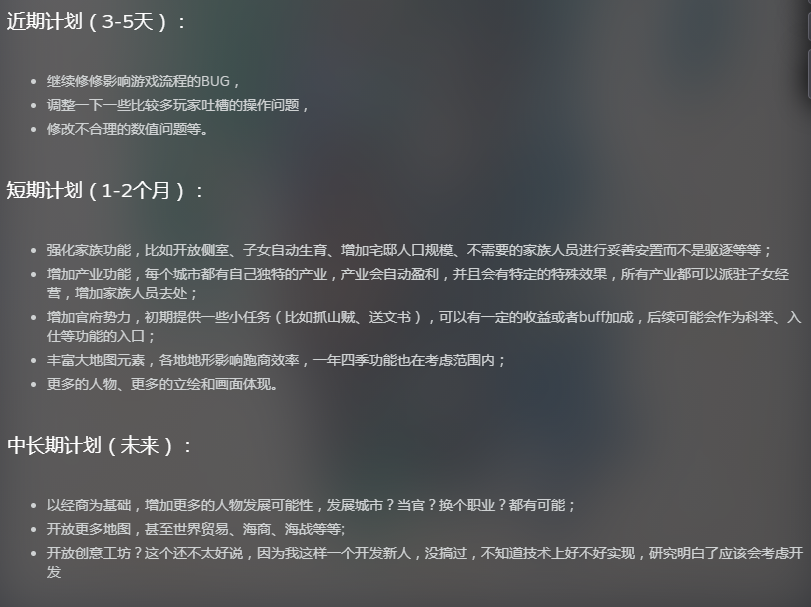 不难看出,虽然《中华一商》的整体玩法偏于轻度,却算得上是一款“麻雀虽小五脏俱全”的模拟经营游戏,且各个系统颇有延展性。制作组也表示,基于大地图他们将加入地形、一年四季、世界贸易、海战、海商等元素;基于城镇,还可能加入官府势力、科举入仕以及抓山贼等小任务。
