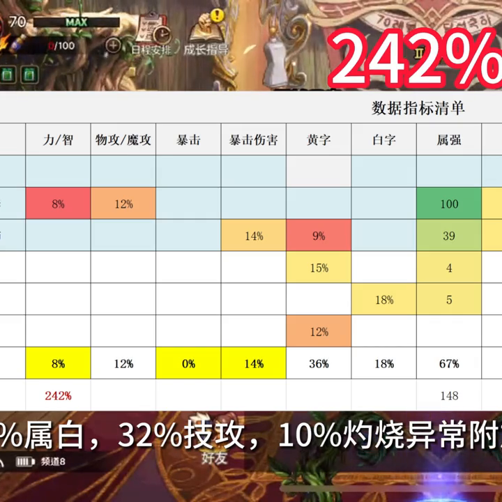 白字37%,属强48折算提升22%,鼠白百分之十五技工30%,额外100点命中,400点闪避,体力增加120,提升了生存能力。