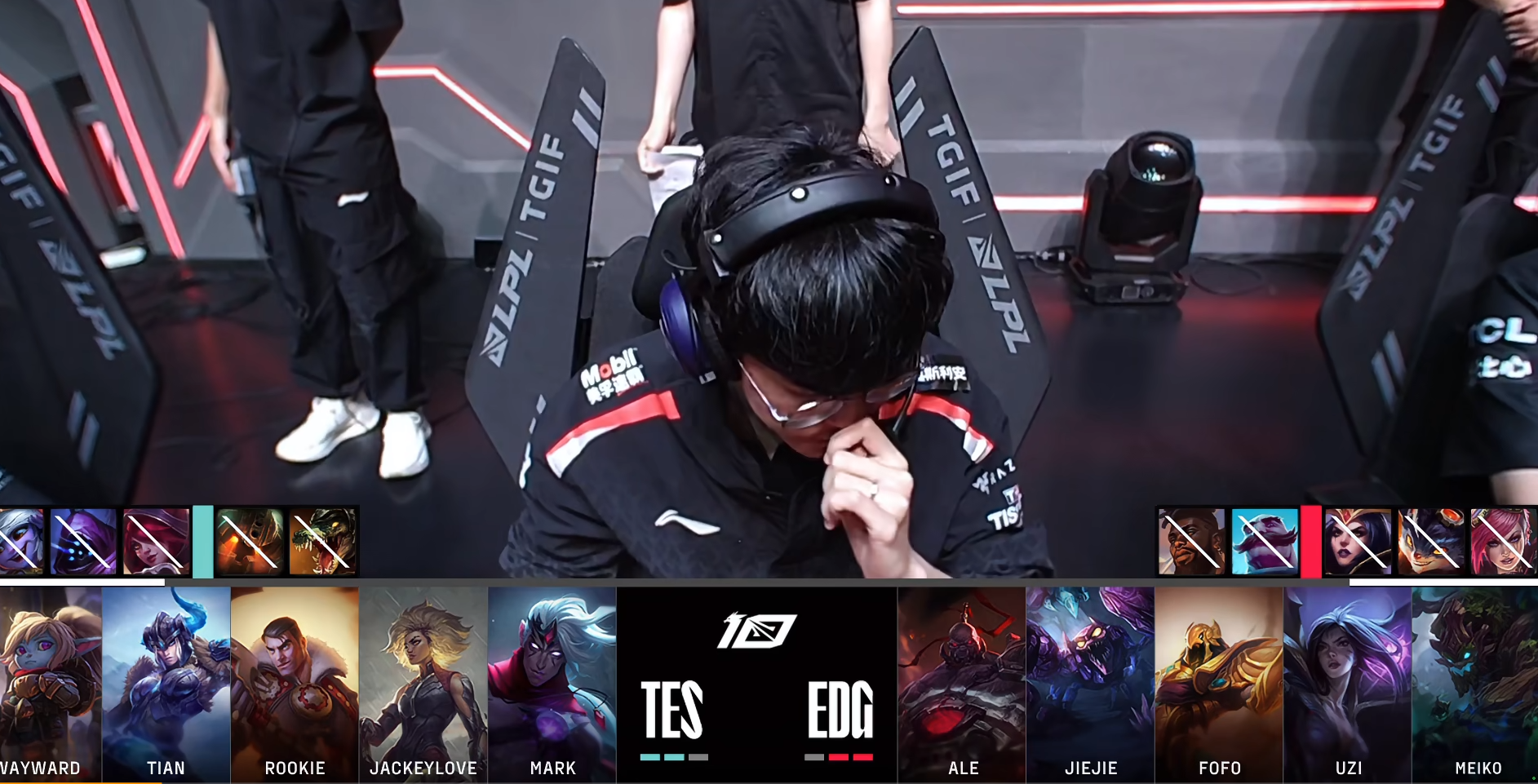 这局的蝎子打野,作用是有的,但是效果不明显。JIEJIE的蝎子打野,中期的话是有效果的,在ROOKIE回中路的一波,抓到了杰斯,秒了杰斯。但是,因为TES下路是维鲁斯的原因,蝎子打野近身的话会被维鲁斯的大招克制。而且在后期,1300这个经济根本不算什么。1300的话可以避免受到一个致命控制,无论对中单还是下路来说都是值得划划算的投资。