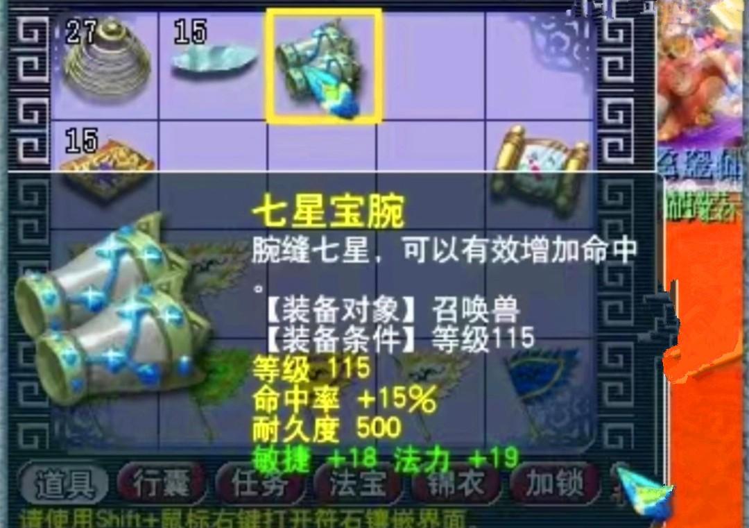 上面是一件在乌鸡国副本任务中获得的召唤兽装备,这件召唤兽装备增加了18点敏捷和19点法力,综合属性达到了37,这是在乌鸡国副本任务中能够获得的最值钱的道具奖励的,这种属性的召唤兽装备的价值是上千的。不过在乌鸡国副本任务中获得这种奖励的几率特别低,小编玩了十几年的梦幻了,也没有在乌鸡国副本任务中获得过这样的奖励。