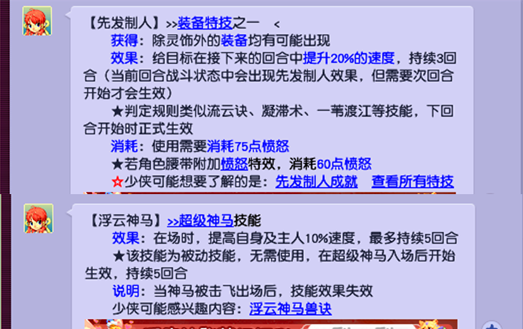 所以小编在这种情况下就想到了一个特技,该特技是先发制人,可以提升20%的速度,持续三个回合,下一个回合会生效,也就是会持续两个回合,小编感觉法系可以带先发制人的效果,这样可以提前一个回合给自己队伍中的封系使用,让封系在下一个回合保证可以拿到一速,而且先发制人特技的价格特别便宜。