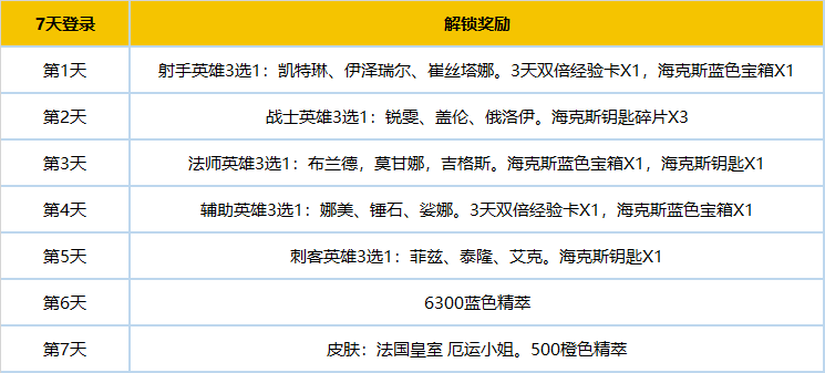 版块一:7 天登录奖励: