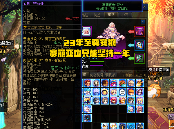 【3,24至尊宠物】+160四维,+25全属强,+5%三速,+45%攻击强化,+1615名望值。