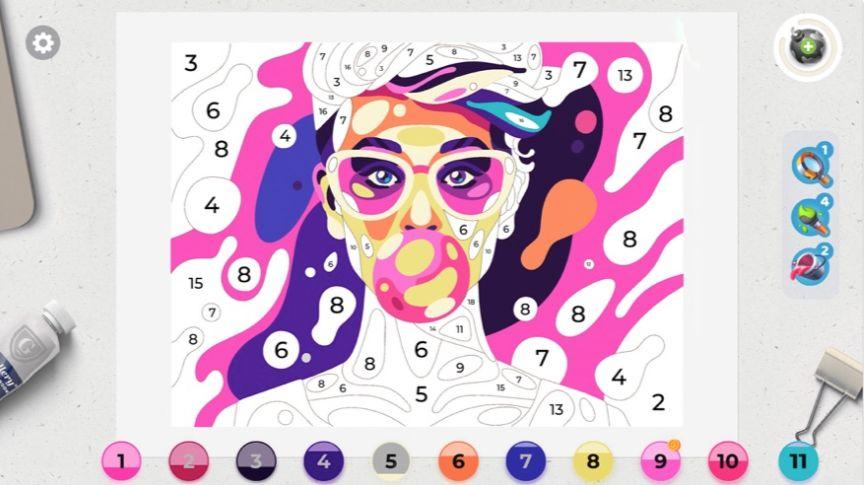 游戏中还有彩色炸弹道具,这种道具已使用即可在一片区域内把不同的多色全部填满,加速游戏节奏却又不会显得着急,给玩家提供爽快的感觉,帮助玩家更快完成画作。