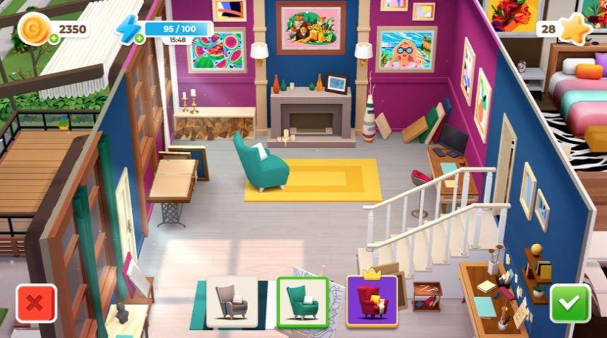 玩法也相当有意思,玩家通过图画填色帮助主角完成一副又一副的艺术作品,获得星星奖励,然后使用星星更换他们的新家的家装和家具。