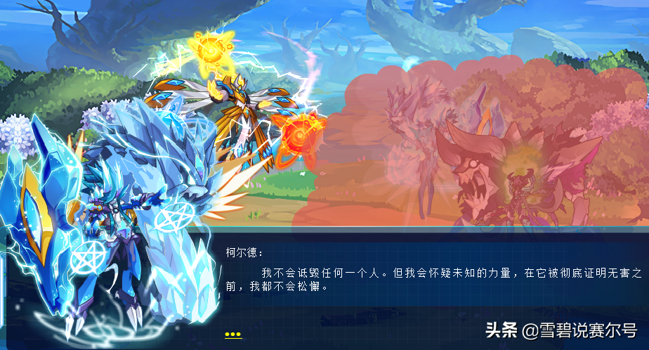 比如从阿尔蒂克以后,后三位合同精灵王的戏份明显多了起来,而且从对话中我们也能清楚的了解到,融合和合体虽然概念上是一样,但还是有一个不一样。两位一体和彻底吞噬绝对不是一个概念。
