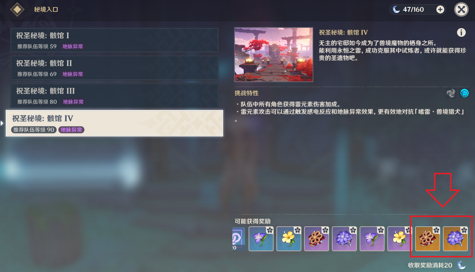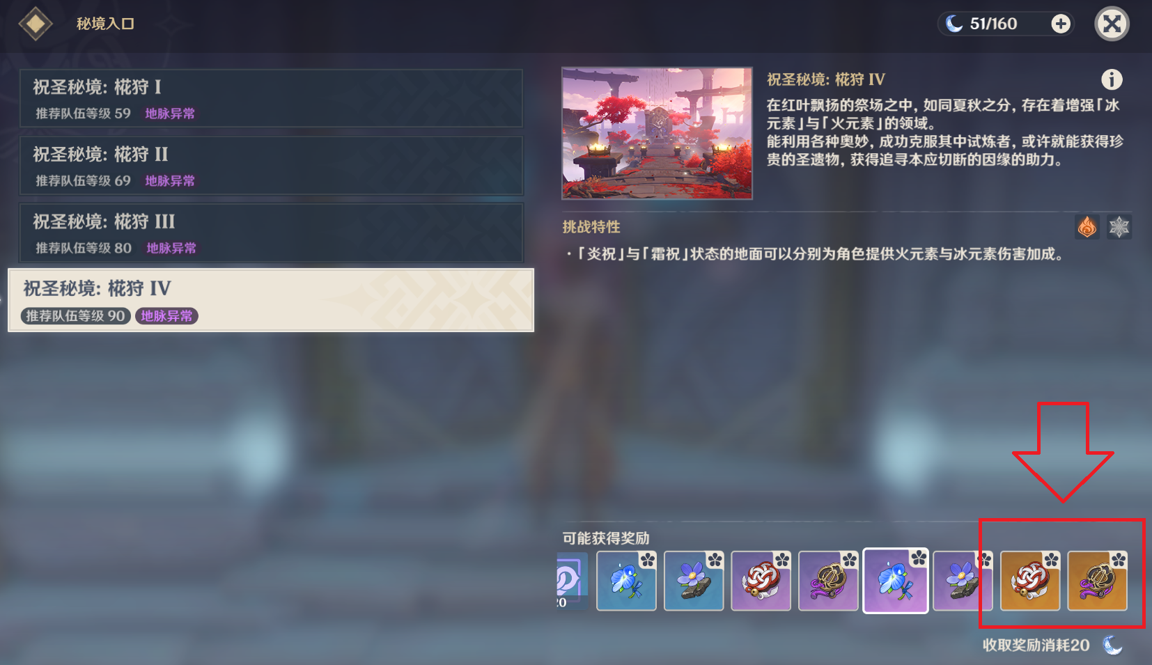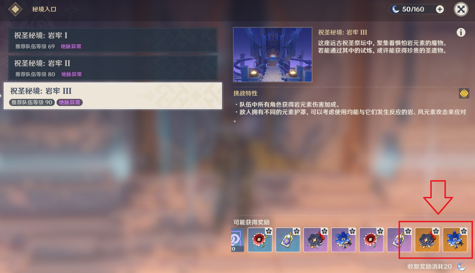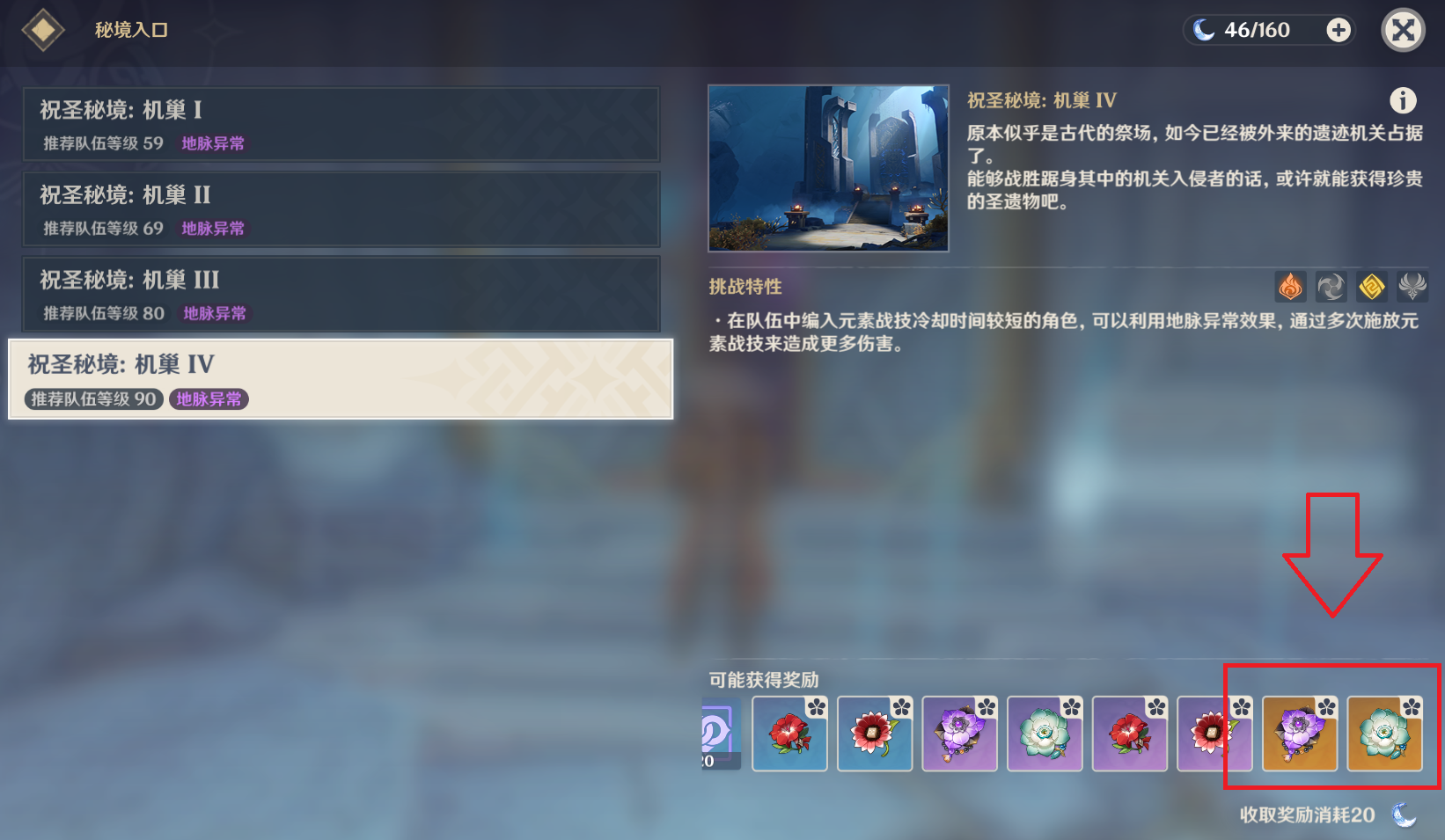第三个副本,华池岩釉。游戏早期就会解锁的副本,自从有了炼金台转换圣遗物之后,玩家一般都很少去刷,主要产出染血的骑士道和昔日宗室之仪两套5星圣遗物。但这里花郎要说的是,这个副本绝对值得萌新玩家去刷,由于其释放元素爆发之后提高20%的攻击力加成效果,昔日宗室之仪这套圣遗物可以给大部分当前主流辅助用,比如班尼特、行秋、迪奥娜等等。
