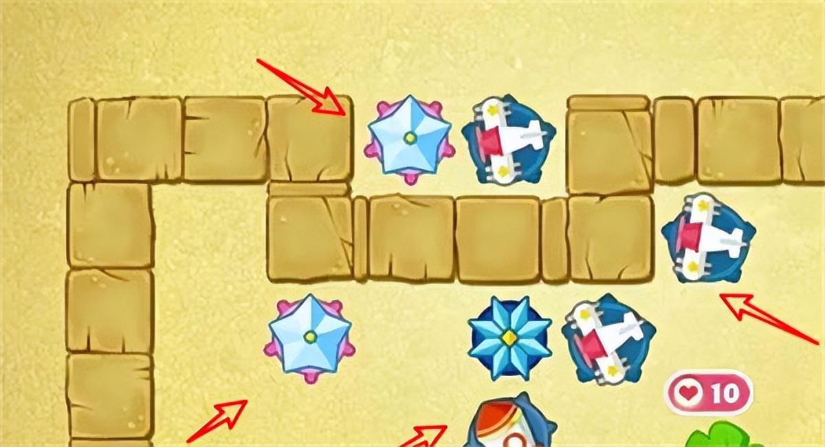 5:如图所示,你们按照小编这样的摆放是肯定可以通关的,如果还是觉得困难的话,可以多安装一些星星减速的,这样他们的速度慢了就可以输出了。