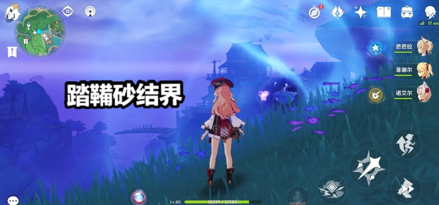 目前如果想要快速找到鸣草,玩家可以记住两个关键的地点,一个是踏鞴(Bei)砂,一个是八酝岛,八酝岛的话,鸣草并不是很多,主要是前往踏鞴砂采集,不过想要进入踏鞴砂可没有这么简单,因为踏鞴砂有一层结界,这个结界不是靠雷种子就能进去的,而是需要完成特定的任务之后,才可以破除这个结界。首先玩家需要找到三个关键的NPC【虎之助、阿幸、泽维尔】,分别完成任务之后,找到三处的御影炉心,接着启动三处的【神居岛崩炮】就可以打破踏鞴砂的结界了。