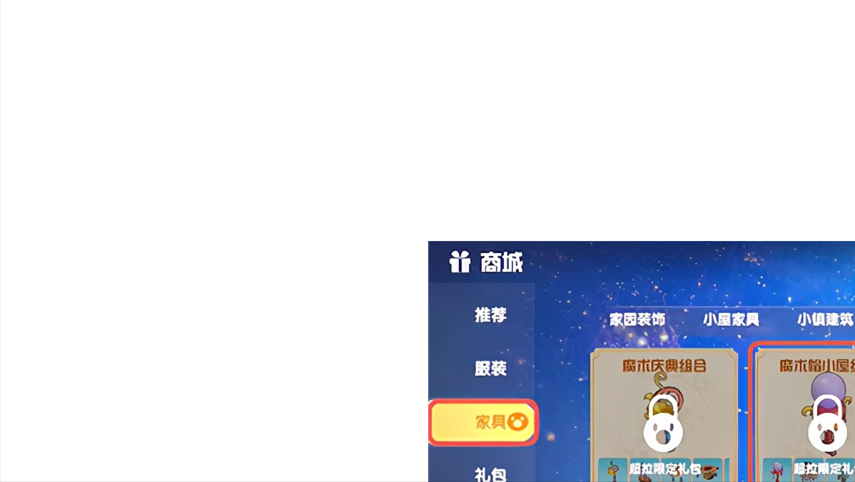 4、在商城的【家具】-【超拉限定 】中找到需要购买的【魔术帽小屋组合】;