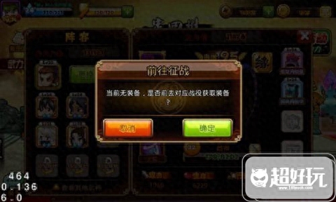 2、如果武将身上穿戴的装备并不齐全,点击武将未穿戴装备的位置,会提示玩家前去对应战役获取装备,此时可以通过反复挑战或者扫荡副本,直到装备掉落为止