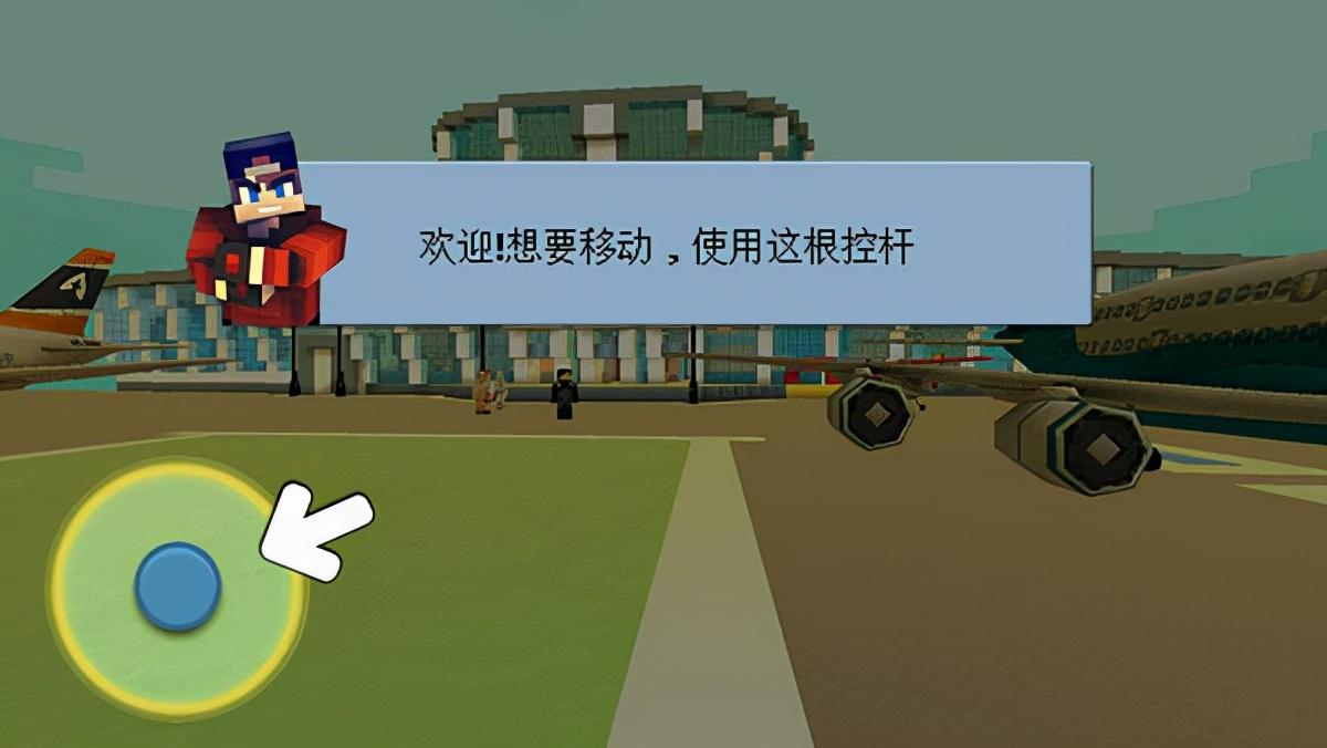 3、欢迎进入机场世界游戏,想要移动角色的话,请使用这根控杆控制行走。