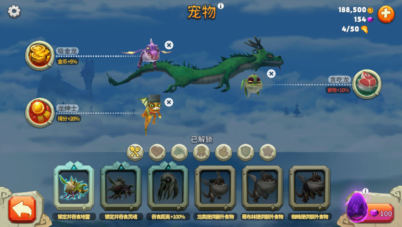 一条强悍的饿龙当然会带上Q萌的小弟一同觅食,不同的小弟能给老大提供各种厉害的加持,是的得整个觅食过程更加轻松;更加高效。(友情提醒:小伙伴们都是冲龙蛋里孵化出来的哟。)