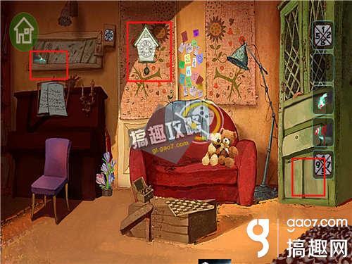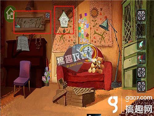 进入房子点击小房子,拿到碎片,桌子上找到指针