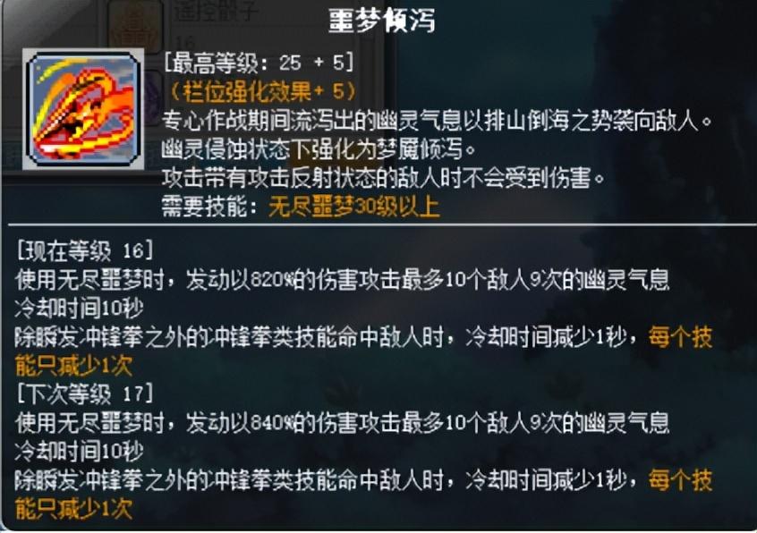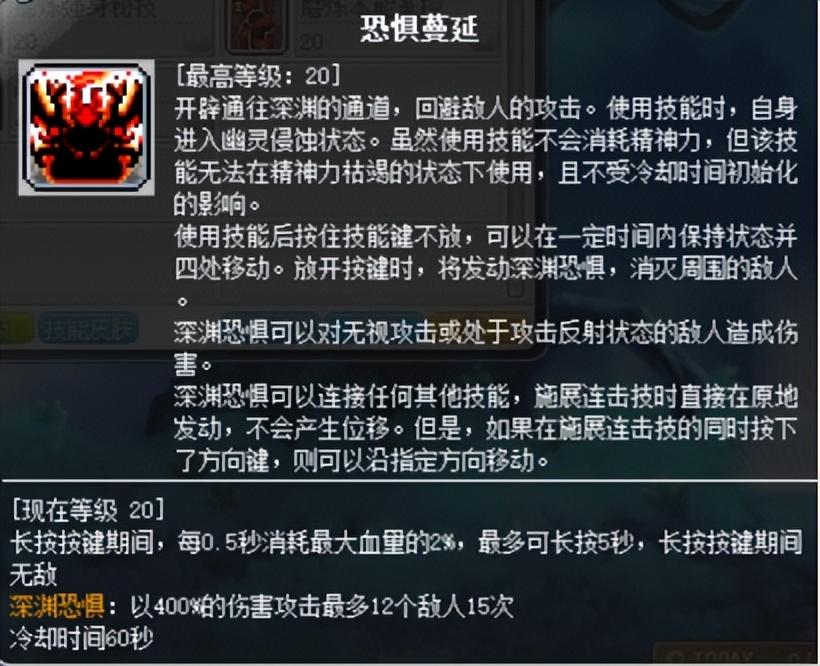 这个是继续强化噩梦纠缠/梦魇纠缠的被动技能,在原本的技能后面多增加了一次小全屏伤害,也是刷图的主要技能,两个模式下的强化效果分开计算,搭配CD头,可以做到小全屏无缝衔接(但不建议)。