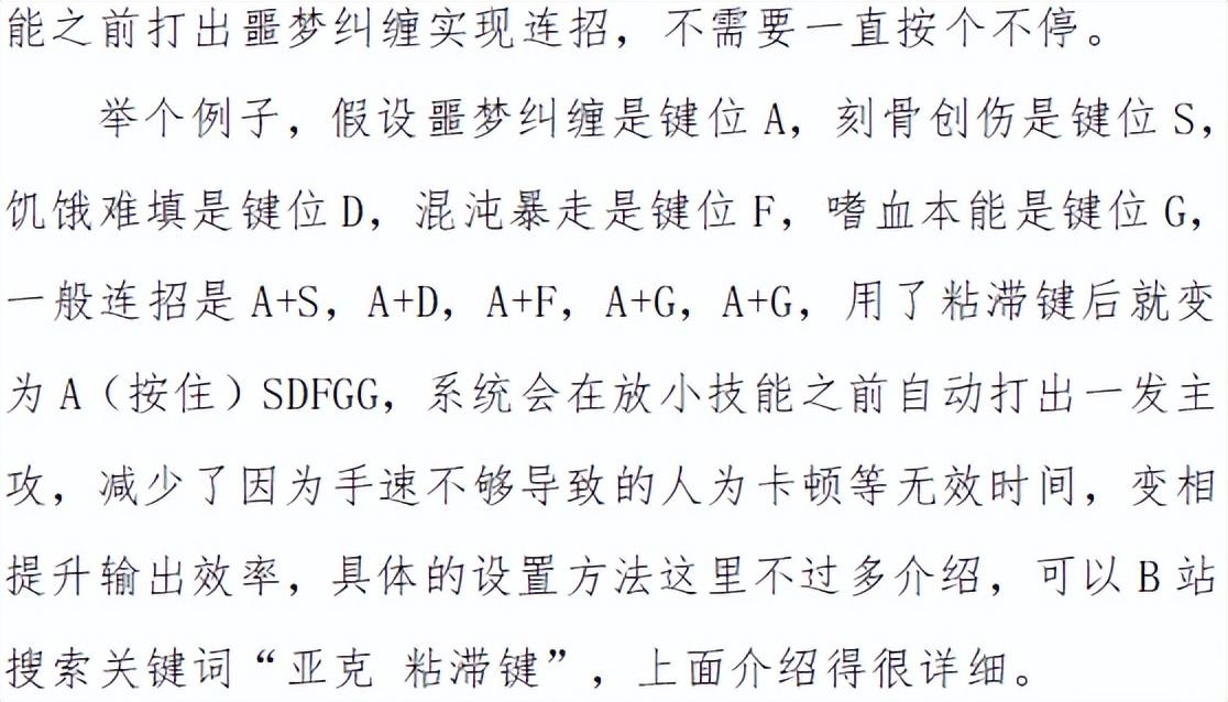 亚克所有小技能都可以在空中释放,因此没有极闪和无敌也可以轻松躲掉斯乌的电流、路西德的绿龙等。激活幽灵模式后,空中跳两次+悬浮飞天+两次狂暴冲动/嗜血本能(超技可以点出三次)+刻骨创伤/饥饿难填/混沌暴走共计可以有接近10秒的滞空时间,注意狂暴冲动/嗜血本能第一次放完下落一段距离后再放第二次,尽可能延长滞空时间以及避免撞到空气墙,后面的三个技能没有固定的连招模式,根据自己的习惯和实际情况决定。