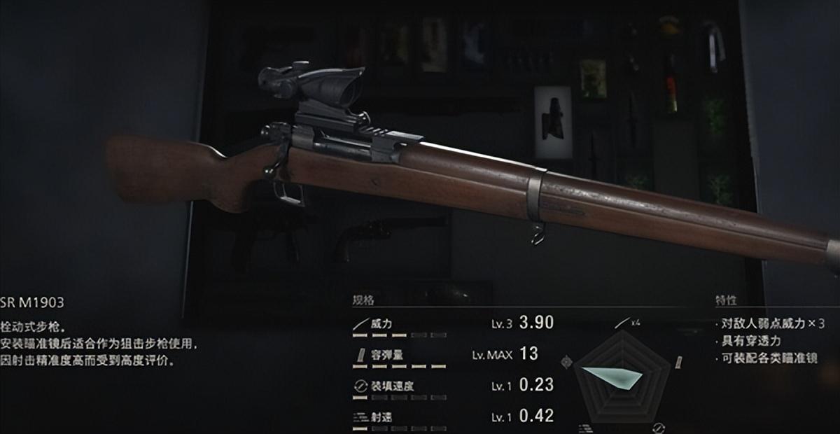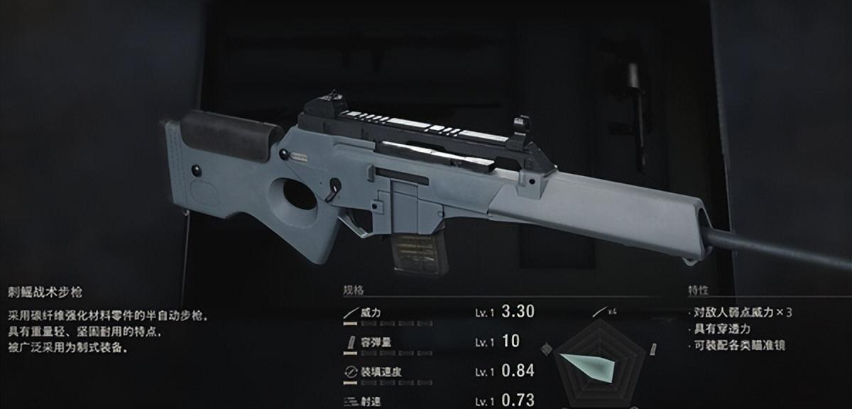 特性:对敌人弱点威力×3。具有穿透力。可装配各类瞄准镜。
