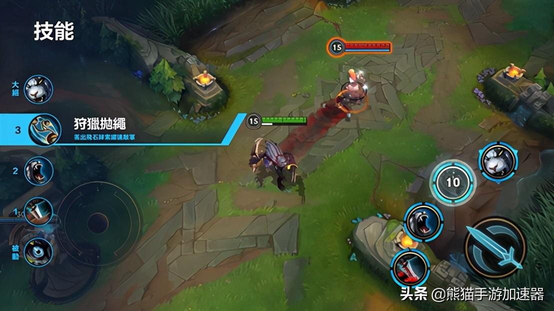 3技能-狩猎抛绳:丢出飞石绊锁减速敌方单位。