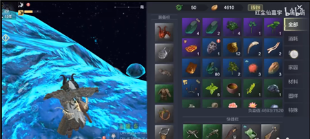 3、可以选择一个飞行的坐骑白翎雕飞到太空,到达之后就可以自己动手建造房子了。