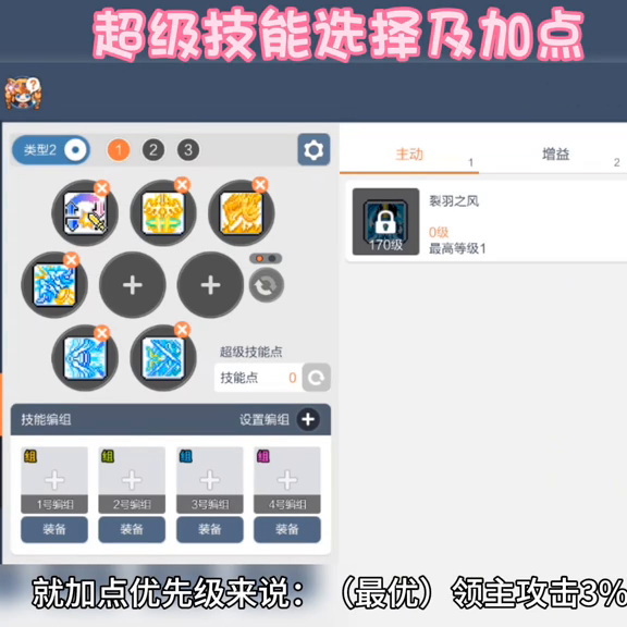 超级被动技能点可以在1411、110、1181级获得,使用类型2的8键位可以更方便地使用技能。超级属性点需要大量的金币升级。在加点优先级上,我会选择领主攻击3%。(优先)无视3%减益抗性1%暴击1%爆伤1%。)物理魔法加伤0.3%概率倍伤,(一般)攻击力20,主属性70。