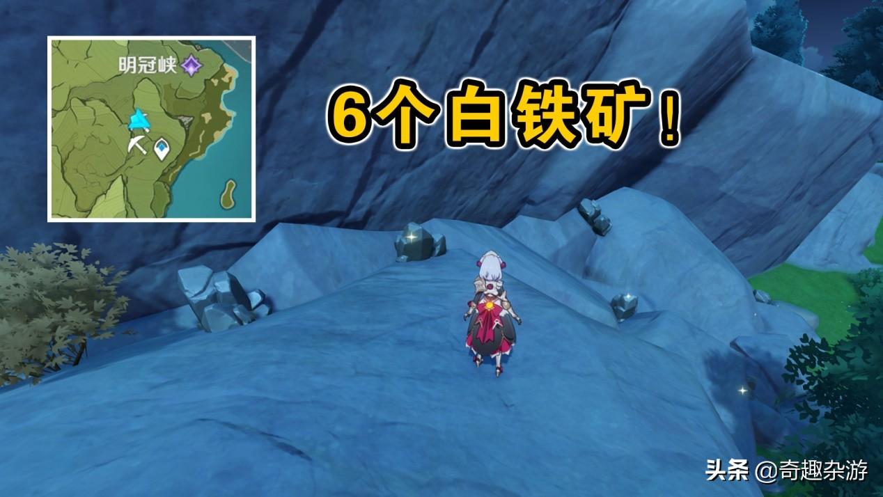 第二个矿点位置和第一个按着很近,就在明冠峡,挖完第一处矿场之后,可以直接来挖第二处。这个地点有6个白铁矿,都在一起非常好找,并且在附近还有几个普通的铁矿石。