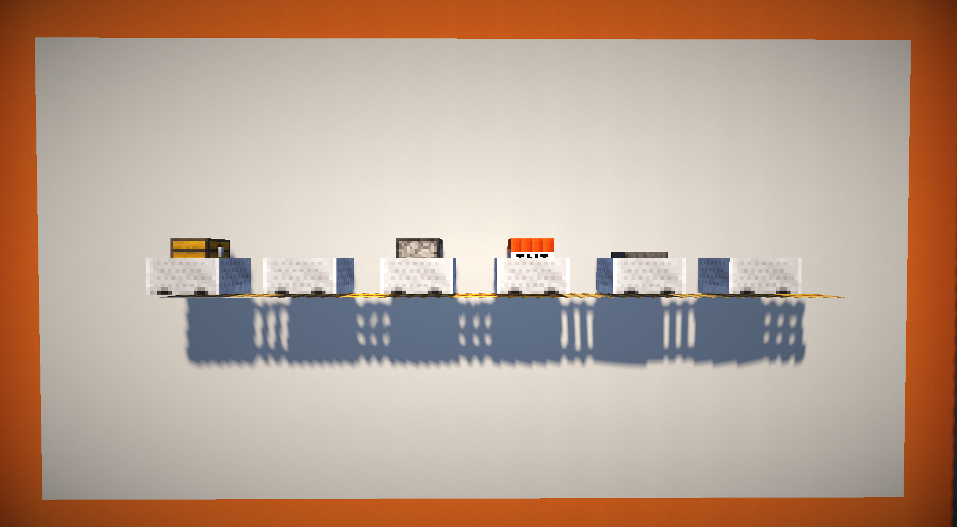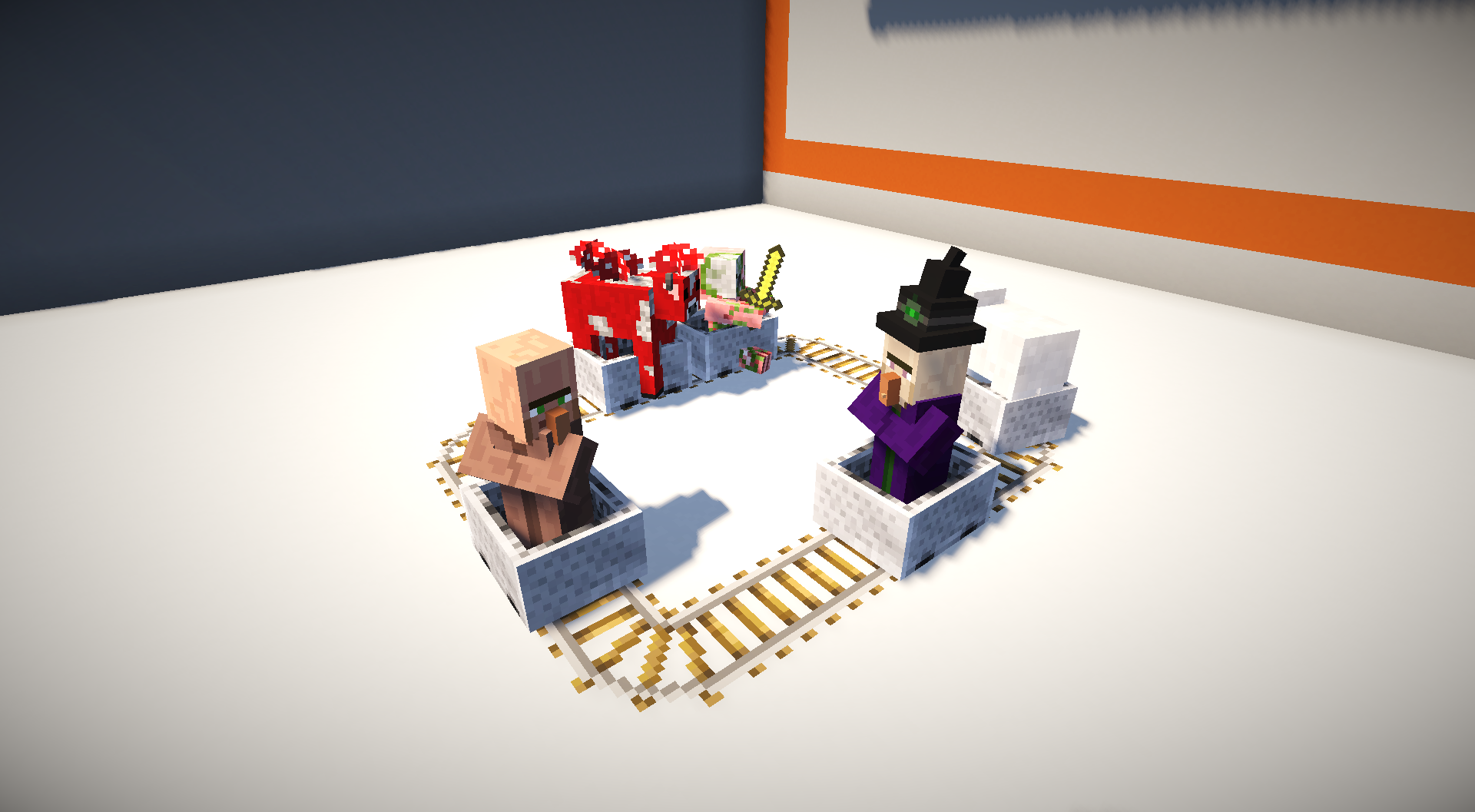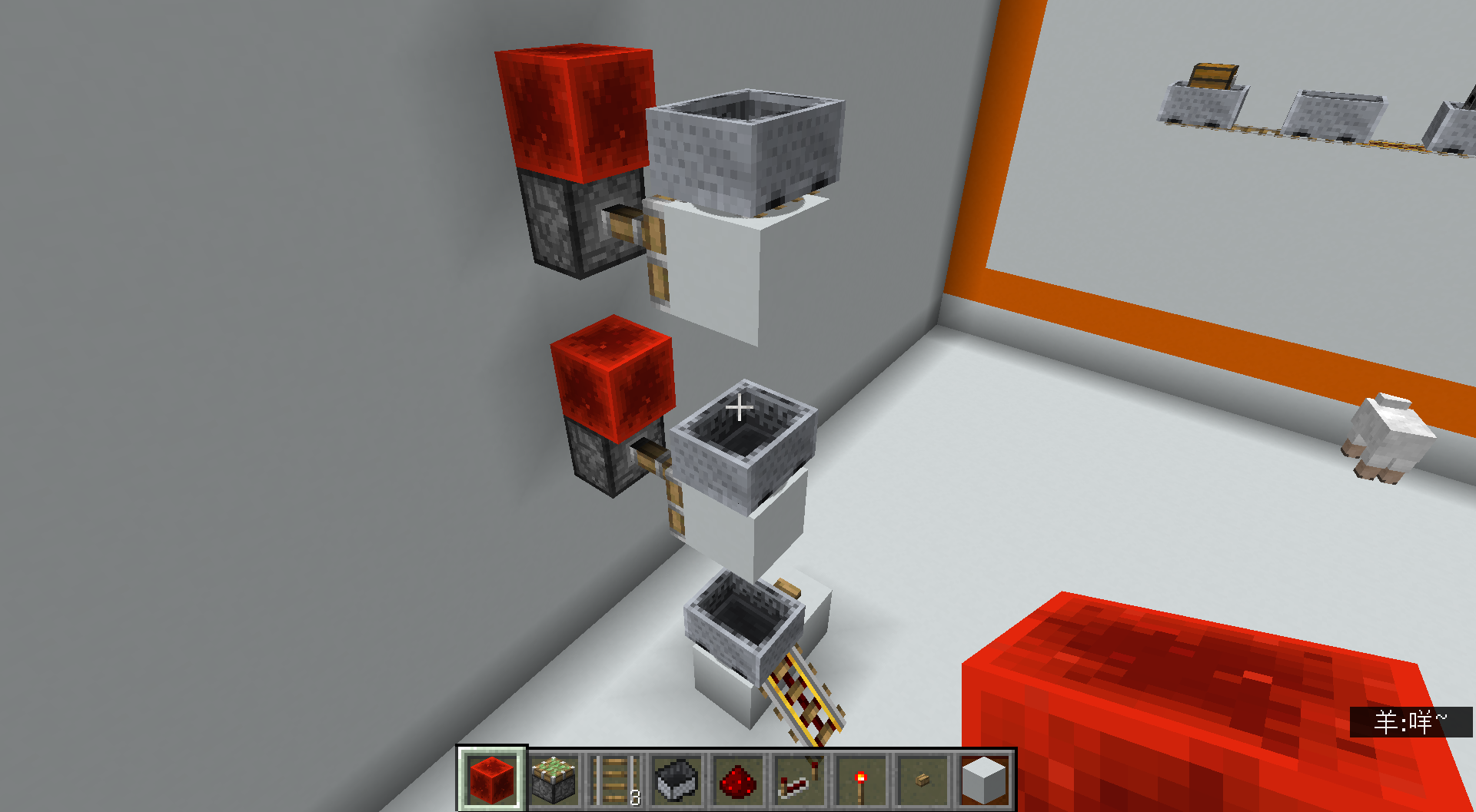 3:由于矿车的模型没有轮子,所以矿车是浮在铁轨上的。
