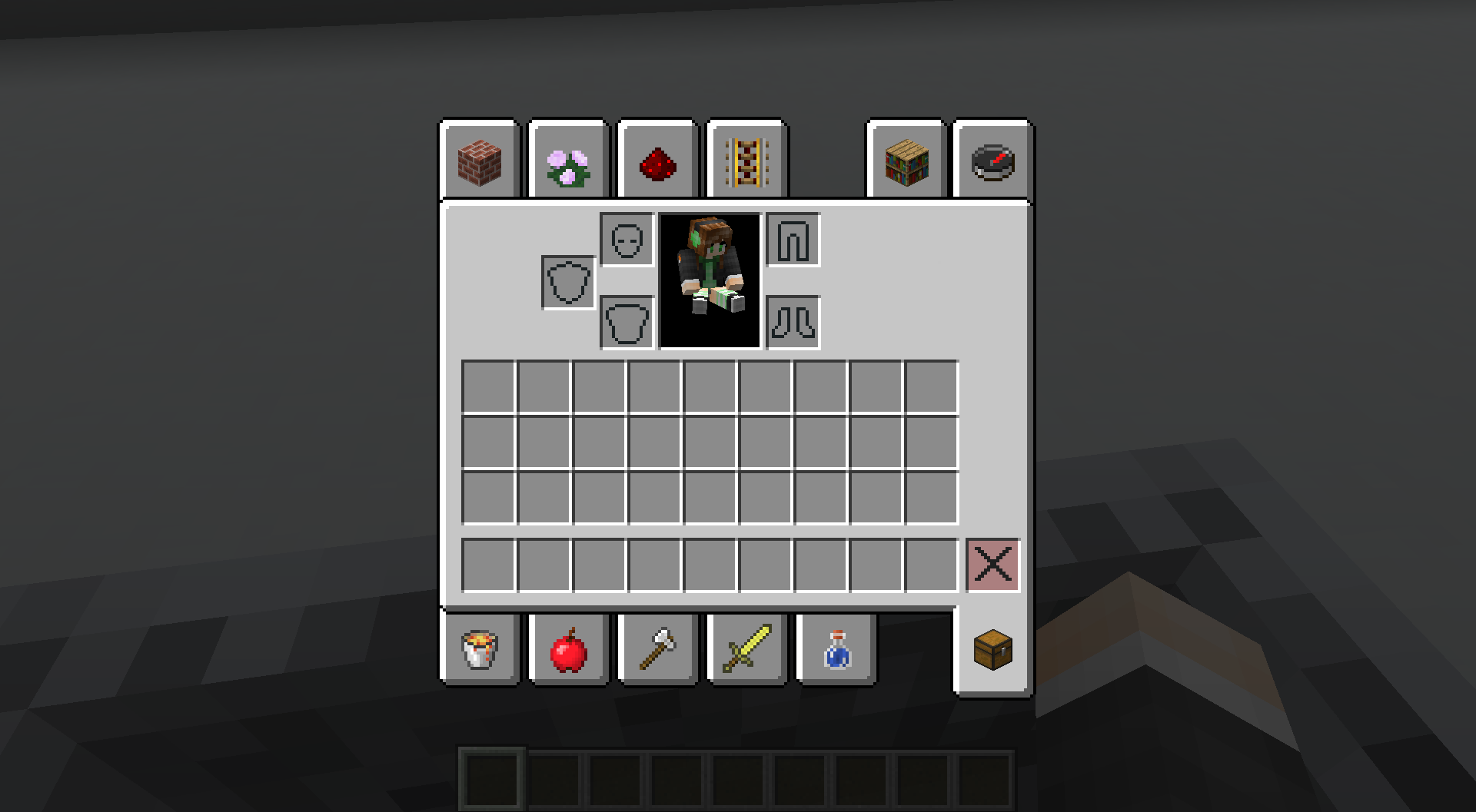 2:坐着矿车的时候打开背包,玩家的姿势是在空中坐下的样子。(下图二)