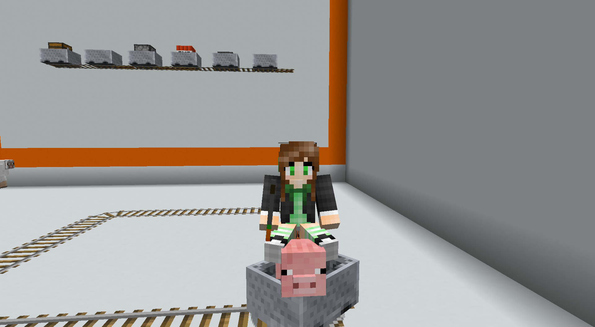 如果一个上了鞍的猪在乘坐矿车,玩家可以骑矿车里的猪。当矿车行驶的方向和玩家吸引猪前往的方向相反时,矿车会在普通铁轨上以被加速的速度行驶!省了一堆充能铁轨!