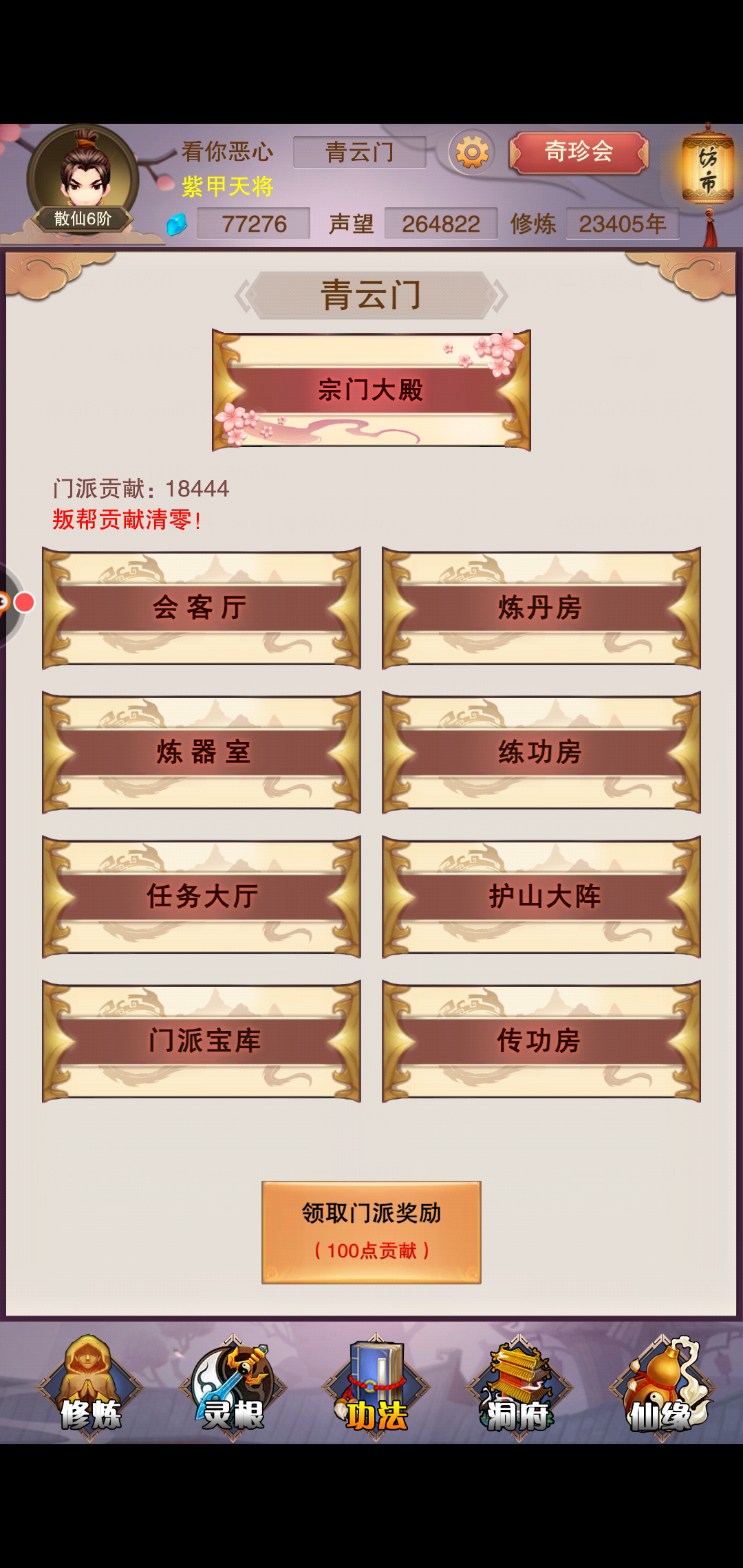 这个是我拜的一个门派,已经呆了十几天了,到现在声望还没攒够